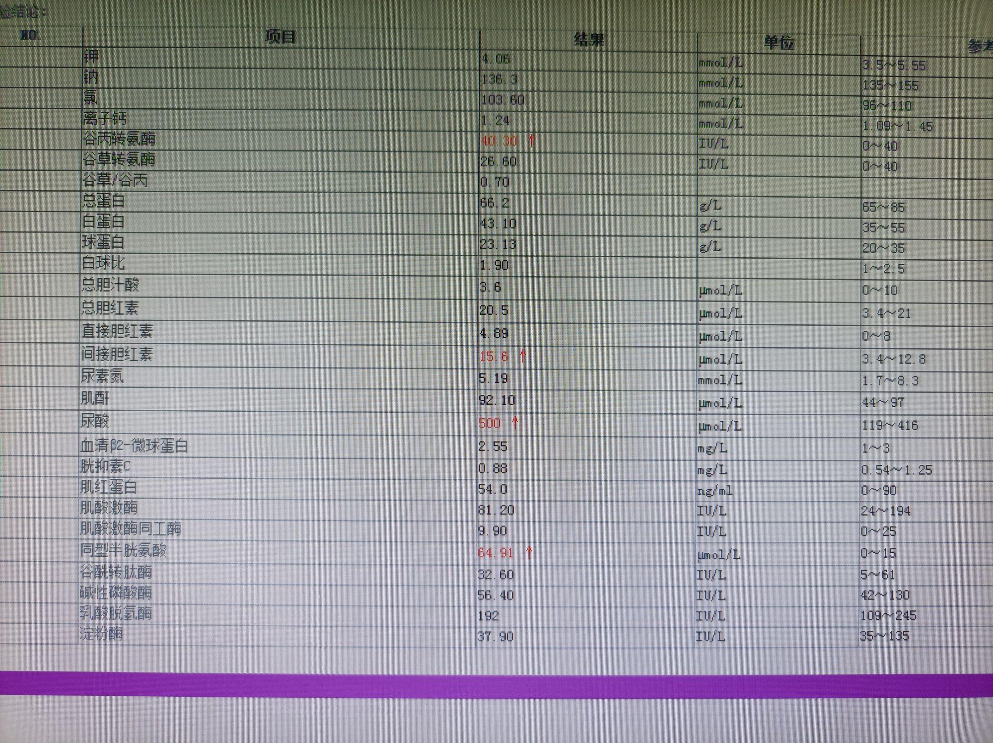 动脉血血气分析:PH 7.36,PaCO2 41.8mmHg,PaO2 72mmHg,K 4.40 mmol/l,Na 141mmol/l,CL 102mmol/l,HCO3- 22.9mmol/l,BE -1.7mmol/l,SO2 93.2%,氧合指数约218,Lac 1.5mmol/l。血糖:6.8-9.6mmol/l,临检检验报告:白细胞16.08*10^9/L,中性粒细胞数12.62*10^9/L,中性细胞比率78.500%,淋巴细胞比率12.800%↓,血小板分布宽度17.400fL ,超敏C-反应蛋白