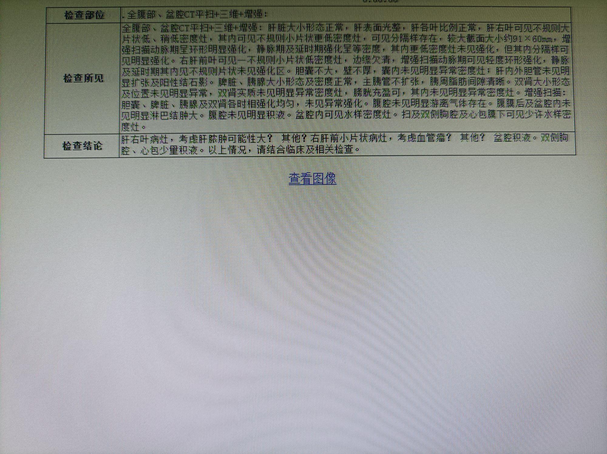 患者入院后,完善相关辅助检查,腹部CT提示有肝脓肿,立即予以监测生命体征,盐水100毫升+哌拉西林4.5静脉滴注抗感染,盐水100毫升+氨溴索30毫克静滴止咳化痰,复方氯化钠500毫升静滴扩容后,于入院第二天在超声引导下行肝脓肿置管引流术,引流出褐色脓液约100毫升。