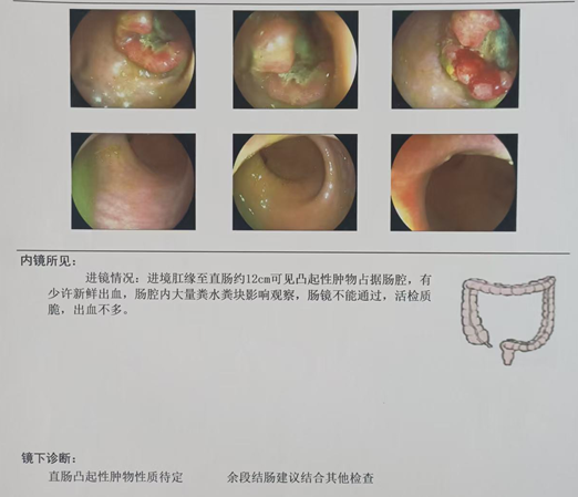3.查体:腹部平坦,无胃肠型及逆蠕动波,下腹正中可见长约15cm手术瘢痕,腹肌软,全腹无压痛、反跳痛、肌紧张,肝脾肋下未触及,麦氏点无压痛,Murphy征阴性,肝肾区无叩击痛,叩诊无移动性浊音,肠鸣音正常,[5]次/分,未闻及气过水音及血管杂音。外阴已婚已产,阴道通畅,内窥镜查看阴道内壁,发现阴道后壁近后穹窿处可见直径约0.5cm瘘口,见稀便样液体自瘘口流出。
