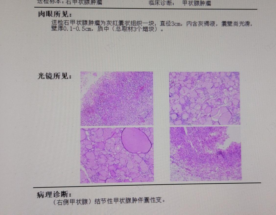 【临床诊断】右结节性甲状腺肿伴囊性变