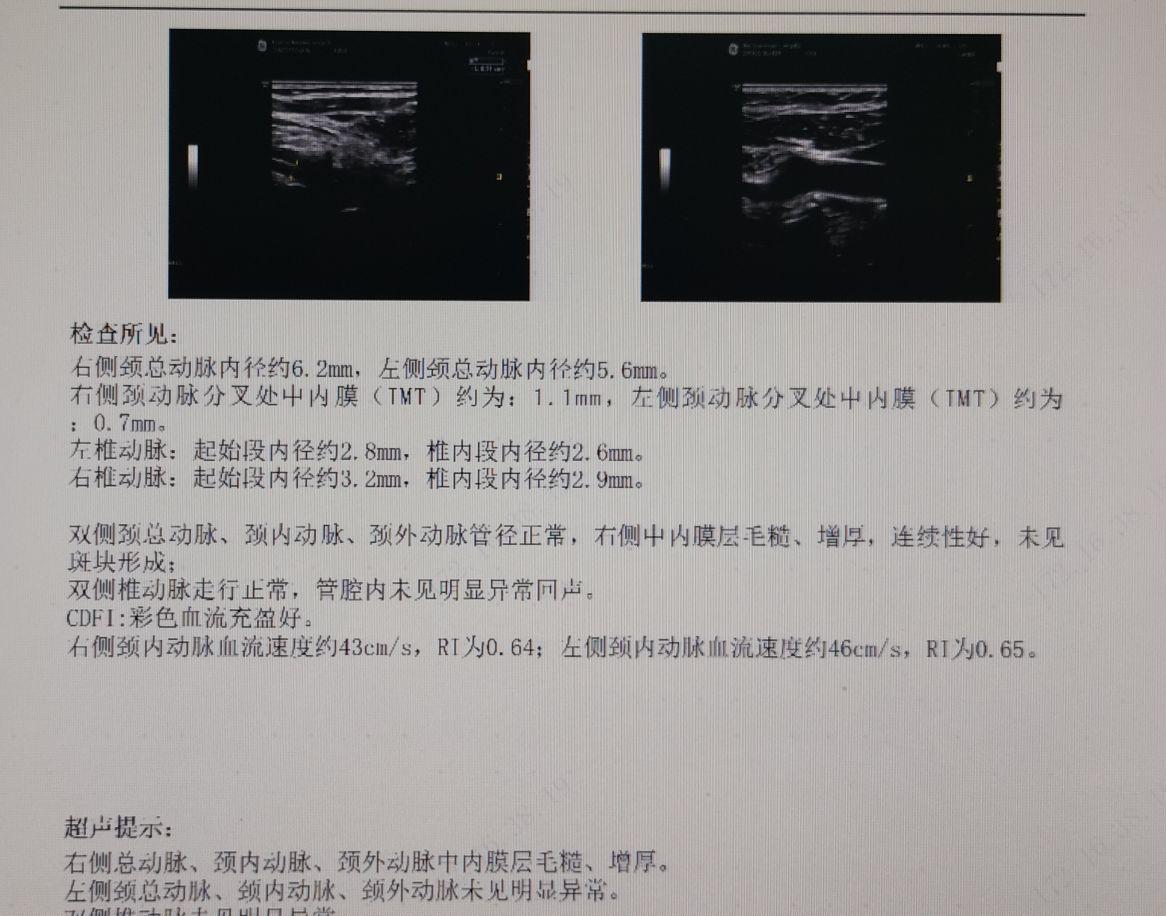 血常规:血红蛋白121g/L↓,淋巴细胞计数1.24*10^9/L↓,中性粒细胞计数1.98*10^9/L↑;生化检验报告:C反应蛋白<7mg/L; 尿常规:红细胞9个/μL↑,结晶200个/μL↑,凝血功能、肝肾功能、血糖、电解质、心肌酶谱、甲功三项、抗核抗体、心电图、胸片等均大致正常,乙肝三对、艾+丙+梅、核酸检测均阴性;双侧颈动脉彩超:右侧总动脉、颈内动脉、颈外动脉中内膜层毛糙、增厚;左侧颈总动脉、颈内动脉、颈外动脉、双侧椎动脉未见明显异常;双眼彩超:双眼玻璃体混浊声像;颅脑+双侧骶髂关节磁共振示:考虑双侧额叶缺血灶;骶髂关节MR平扫未见明显异常;右臀部皮下组织异常信号,考虑水肿或挫伤;所示盆腔少量积液;VOD:0.2(-0.25DS/-0.50DC*66=0.4),VOS:0.2-1(-0.25DS/-0.75DC*105=0.5);双眼睑无红肿下垂,结膜无充血,角膜内皮见大量羊脂状KP,以下方分布为主,前房中深,Tyn(+++),虹膜纹理清,瞳孔圆约3.0mm大小,对光反射灵敏;双眼晶体透明,玻璃体混浊,眼底模糊示:隐约见视盘界清,C/D约0.3,A/V约2/3,网膜平伏,未及明显出血、渗出,黄斑中心反光未及;双眼眼压: