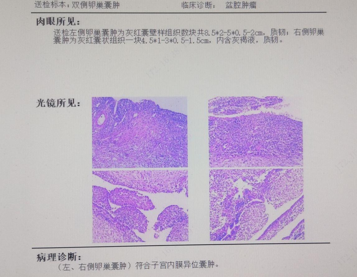 1.双侧卵巢巧克力样囊肿2.女性盆腔粘连3.中度贫血
