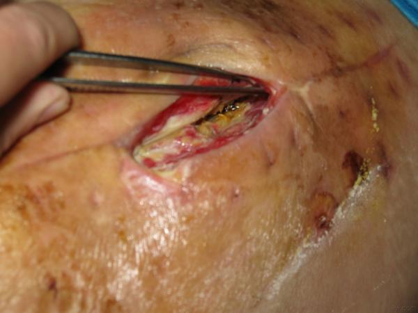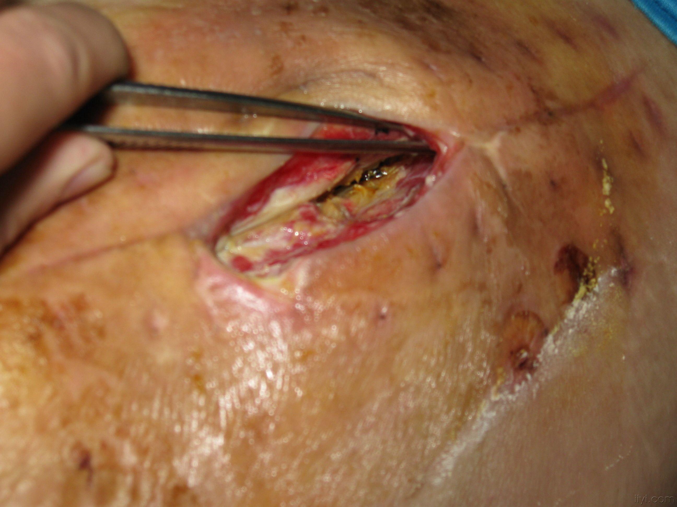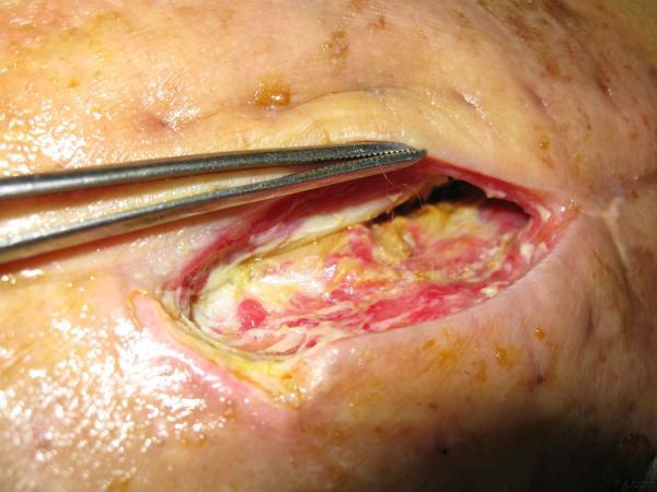 患者女性,76岁,单髋术后月余。术后一周开始出现脂肪液化,加强换药、引流,伤口约一厘米未愈合,皮下约有2×4那么大空腔,一直有淡黄色的液体流出。十天前我接手这个病人后,就扩创,充分引流,发现股直肌下尚有坏死脂肪未能引流出,予之清理后形成一间歇。目前仍然有淡黄塞液体渗出,只是引流的充分,换药的时候没有,引流条和纱布都是淡黄色的。伤口老是不长,我该怎么办啊?目前换药是用高糖和胰岛素沙条放在伤口内。请教各位有扫描高招??