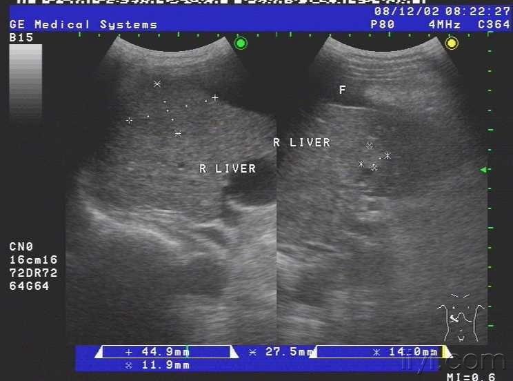 2.肝内多发囊肿.