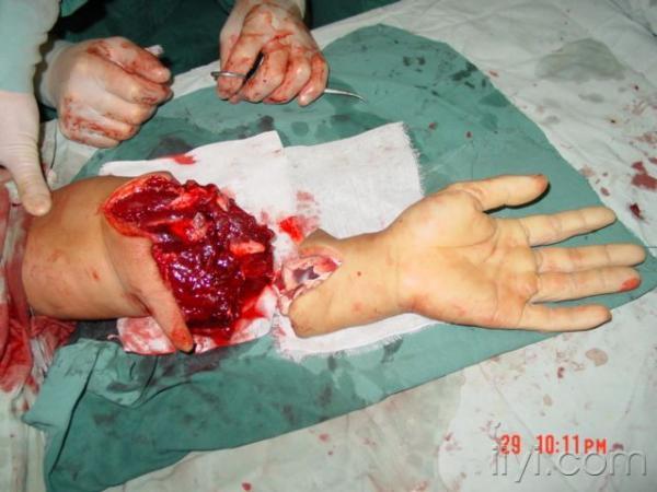 看最近两张照片应该是术后1周左右的,断肢血运不错,就是不知功能如何,楼主将尺桡骨断缩多少,应该是钢板固定吧,有利以后功能锻炼,尺桡神经吻合怎么样, 不知功能如何.