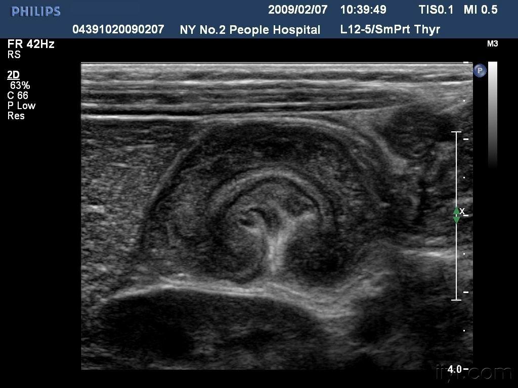 患儿哭闹数小时来我院就诊,超声检查发现右侧相当于结肠肝区位置可见“同心圆征”。来和大家分享一下,呵呵。