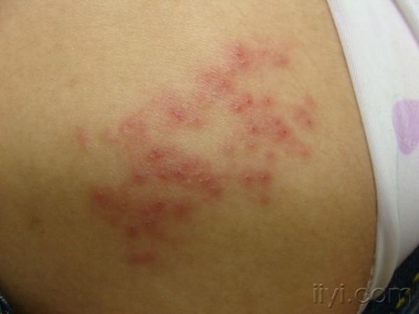 疱疹病毒2型感染症,仅见于成人,主要好发于臀部,其次为四肢,特点为在红肿的基础上发生细小的水疱,少数簇集,预后留色沉,发疹前或同时,可伴有神经痛或膀胱**症状,所谓带状单纯疱疹,可能就是本症