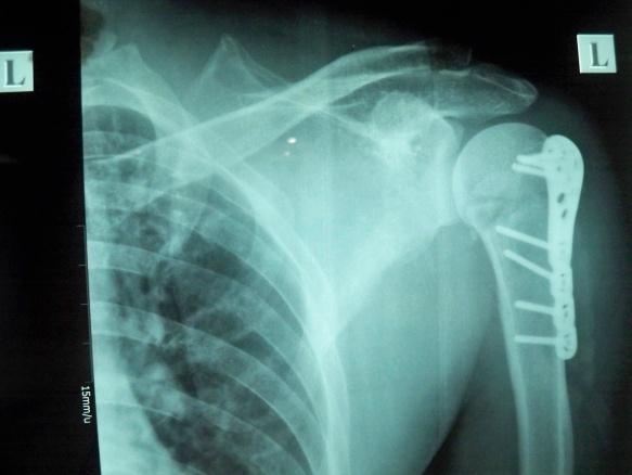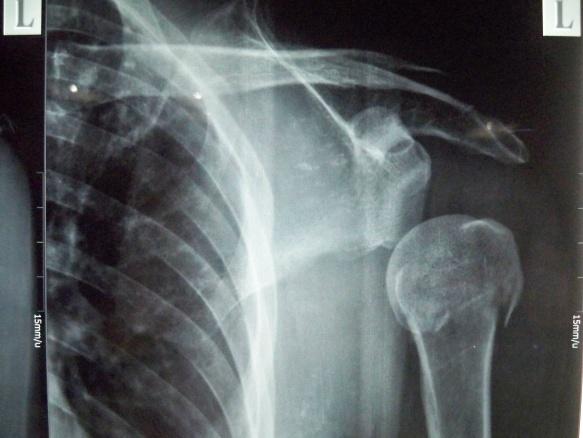 患者男,43岁,从约3米高处坠落,左肩关节及上臂肿胀、疼痛活动受限3天入院。