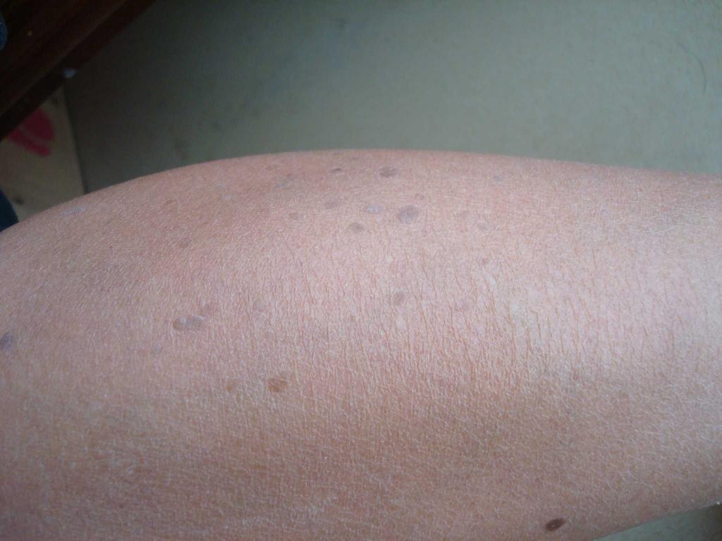 今日再次仔细查看患者手臂及小腿丘疹特点,同意 蝴蝶butterfly的意见,修正诊断为:皮角 丝状疣和灰泥角化.