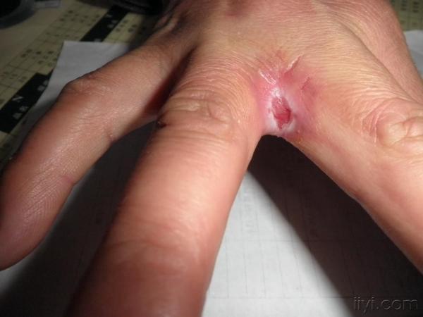 外伤后久不收口,经常接触水。检查真菌阳性。
