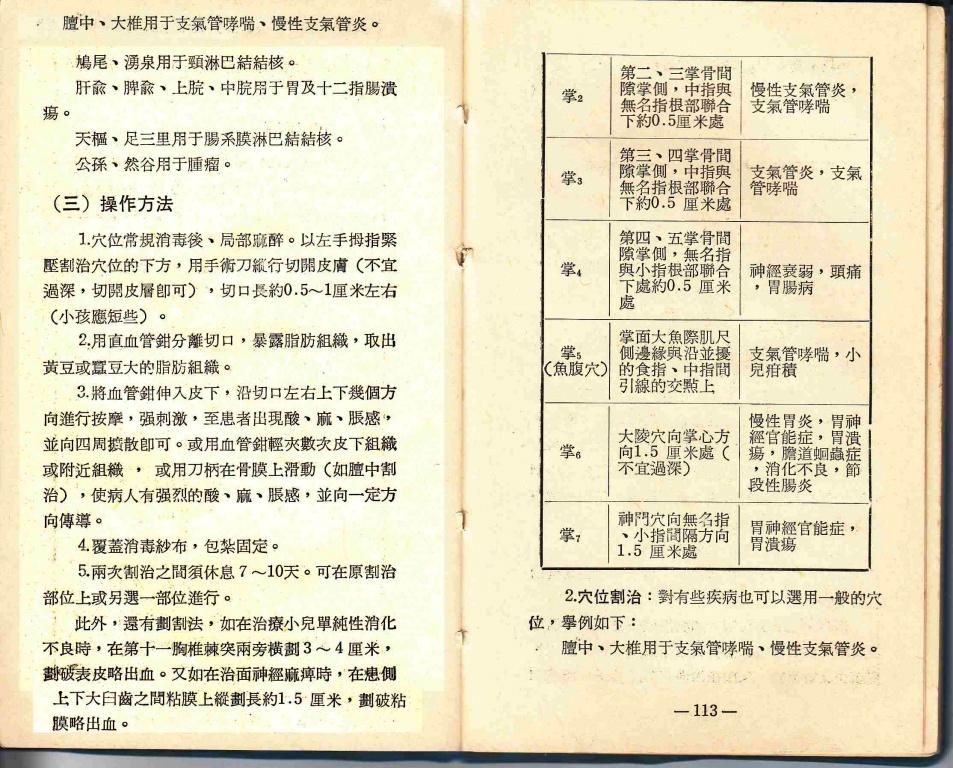 这三页的割治疗法,整理自马康慈著《实用中西医师临床针灸处方集第一集》(台北,自印,1977年11月初版)