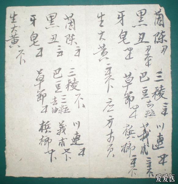 一个手抄的老药方,一本老儿科医书里夹带的。欣赏一下。