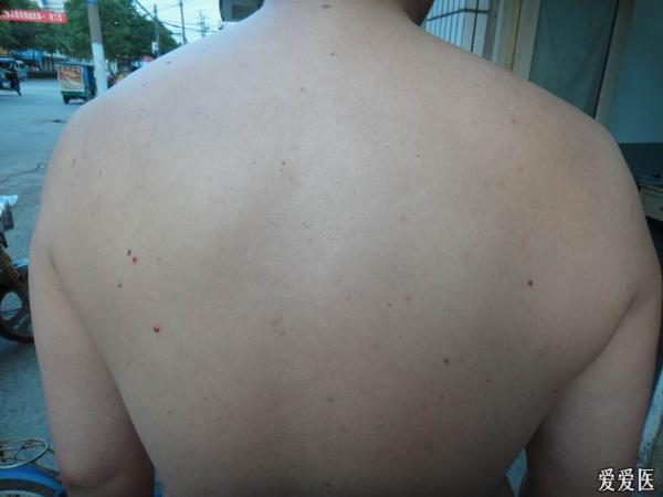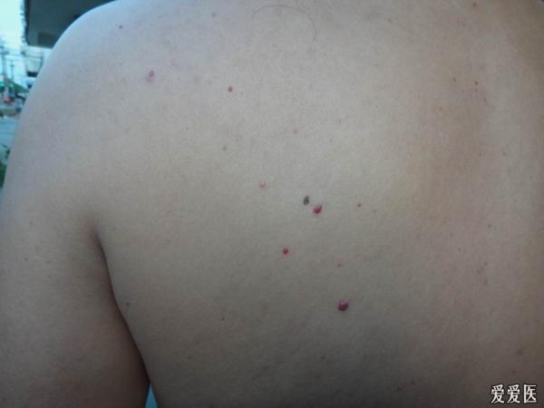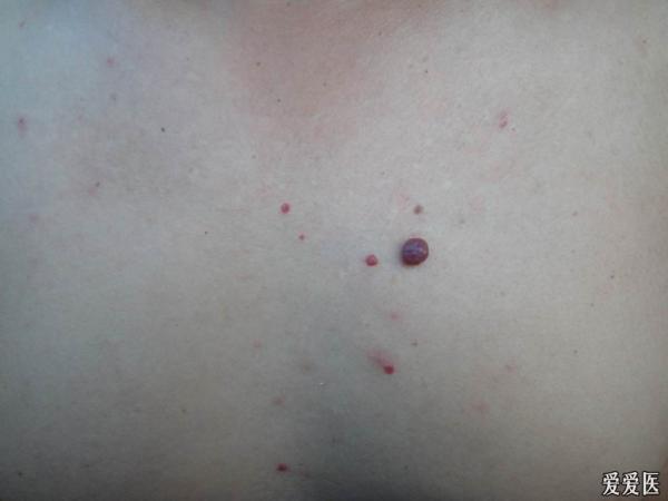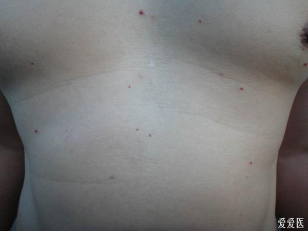 一例全身泛发性樱桃状血管瘤,头、面、上肢、下肢、躯干多发。