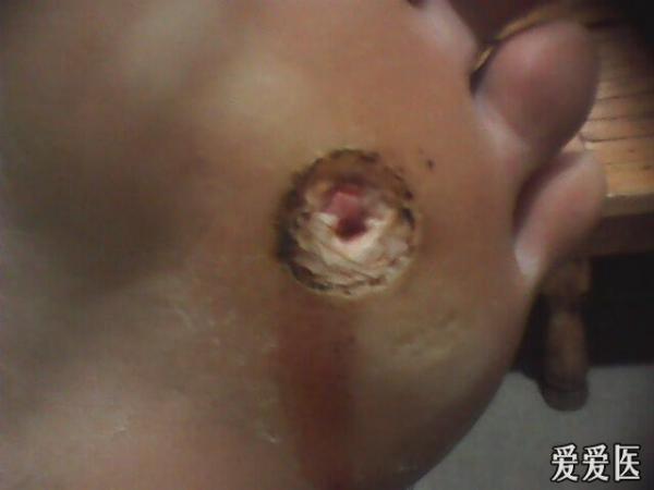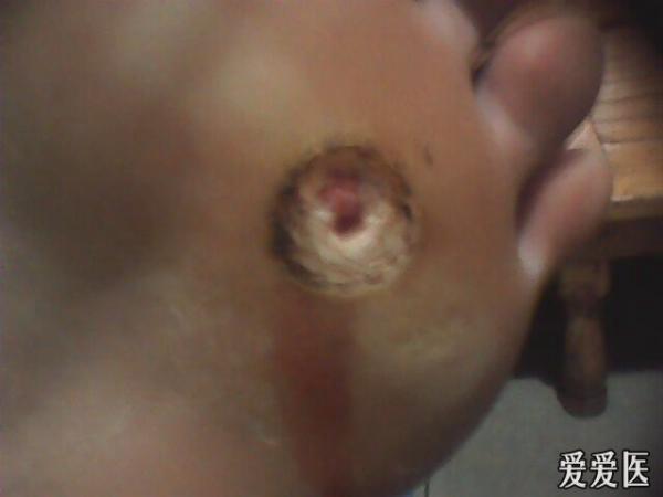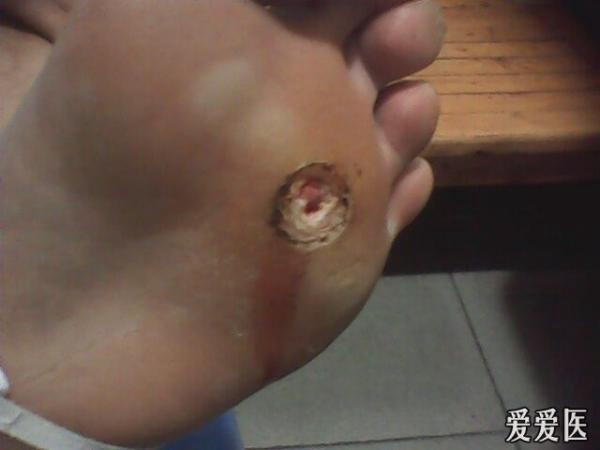 请大家讨论讨论,这病人的鸡眼和1年半前的钉子扎破有没有关系,有鸡眼根部化脓的鸡眼吗?