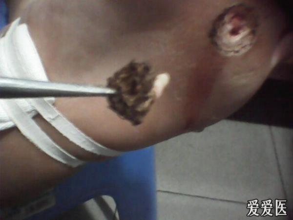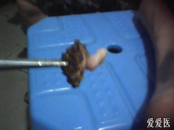 故道我的诊所就诊,我发现患者涌泉穴处有很厚的角质层,初步考虑鸡眼和胼胝,故用高频电刀延鸡眼基地部环形切除,手术接近鸡眼根部时拔出鸡眼根部,同时有脓血流出,有点罕见鸡眼根部化脓,难怪病人疼痛厉害,术后用双氧水清洗脓腔,无菌纱布包扎,术后抗感染抗厌氧菌输液治疗,并叫病人到医院补打了破伤风针。