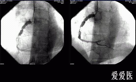 诊疗过程:2011.10.12急诊选择性冠脉造影,结果显示:左冠前降支轻度狭窄,右冠近端、中远段瘤样扩张,内径达10mm左右,右冠中段病变,95%狭窄,狭窄后血栓影,远端血流TIMI2级。将JR46F大腔导管送到右冠开口,送入0.014"runthrough导丝,跨过狭窄处送至右冠远端,然后沿引导钢丝送入抽吸导管到病变处多次抽吸,抽吸血液中可见少量血栓,血栓负荷明显减少,随后送入cordis2.5x15mm球囊,定位于狭窄段,8Kpa扩张球囊1次,重复造影显示残存狭窄85%,但后降支闭塞,0.014"runthrough导丝送入后降支,cordis2.5x15mm球囊8Kpa扩张后血流恢复,改用cordis3.5x15mm球囊定位右冠中段病变处,10kpa扩张后,残存狭窄仍有75%,右冠远端血流TIMI1级,试图进入另一根0.014"runthrough导丝,但在右冠近端瘤样扩张处受阻,结束手术,术中共用肝素针30mg,优维显130ml,期间病人无明显不适,撤出导管,拔除桡动脉鞘管加压包扎,送回病房,嘱右上肢制动,常规抗生素预防感染、心电图、心电监护、注意生命体征及伤口出血血肿和胸痛胸闷等情况。8药物治疗及检查:考虑患者右冠急性血栓形成,予替罗非班应用,同时监测凝血谱、血小板,根据凝血谱、血小板情况调整替罗非班剂量。术后患者血压偏低,一直予多巴胺针微泵维持血压。停用替罗非班针后继续予速碧林针4100iu q12h抗凝,拜阿司匹林片100mg qd、玻立维片75mg qd抗血小板,立普妥片20mg qd调脂,瑞安吉针改善心肌能量代谢,美卓乐片6mg qd治疗系统性红斑狼疮,泮托拉唑针抑酸护胃,阿魏酸哌嗪片、金水宝胶囊改善肾功能,补达秀片补钾。入院来患者一直血压偏低,多巴胺针小剂量维持下血压波动于90/60mmHg,心率70次/分,律齐,心电监护示:窦性心律,未见明显心律失常。2011.10.25停用多巴胺针后血压基本波动予90-100/55-65mmHg左右,患者又有心悸等自觉症状,心电监护可见窦性心律,频发室性早搏,复查心电图示窦性心律下壁、前侧壁、正后壁异常Q波伴ST-T改变。频发室性早搏,部分二联律电轴左偏提示左前分支传导阻滞 左胸导联低电压;急查血电解质K 3.1mmol/l,予静脉+口服加强补钾治疗,第二天复查血钾为4.0mmol/L,但室性早搏仍频发,继续予口服补钾及小剂量倍他乐克12.5mgbid口服后,患者心悸症状缓解不明显。2011.10.16动态心电图:窦性心律伴间歇性窦性心律不齐 房性早搏占<1%,为单发室性早搏占<1%,为单发ST-T改变。2011.10.20查心脏彩色多普勒+左心功能测定+室壁运动分析:(1)左室下壁局部收缩活动稍减弱;(2)主动脉瓣轻度返流;(3)二尖瓣轻度返流;(4)三尖瓣轻度返流;(5)肺动脉瓣轻度返流。(1)主动脉根部内径31舒张期室间隔厚度8左房内径29舒张期左室后壁厚度9左室舒张末期内径52射血分数(EF%)72.9左室收缩末期内径30。(2)左房左室内径正常,左室壁不增厚,静息状态下左室下壁局部收缩活动稍减弱。(3)二尖瓣不增厚,开放不受限,CDFI见轻度返流。二尖瓣血流图示E峰>A峰。(4)主动脉不宽,主动脉瓣不增厚,开放不受限,CDFI:见轻度返流,主动脉瓣瓣口最高流速约1.24m/s。(5)右心正常大,肺动脉内径20mm,CDFI:肺动脉瓣轻度返流,三尖瓣见轻度返流。CW据三尖瓣返流估测肺动脉收缩压23mmHg。2011.10.20心电图:窦性心律 下壁、前侧壁、正后壁异常Q波伴ST-T改变,请结合临床 左胸导联低电压。2011.10.30动态心电图:窦性心律 偶见房性早搏占<1% 室性早搏占15%部分呈三联律 前侧壁异常Q波伴ST-T改变,请结合临床与常规心电图.。