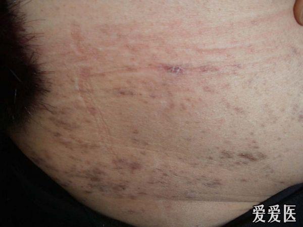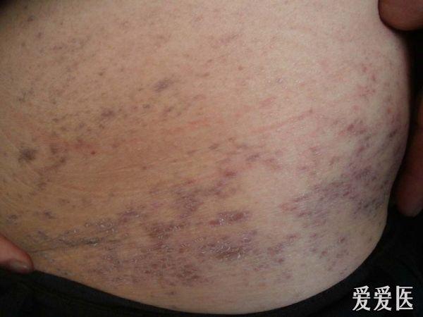 专科情况:腰部两侧出现红斑、丘疹、鳞屑。