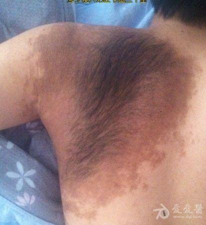 男,25岁,出生即有左肩部斑块,呈逐年扩散状态。