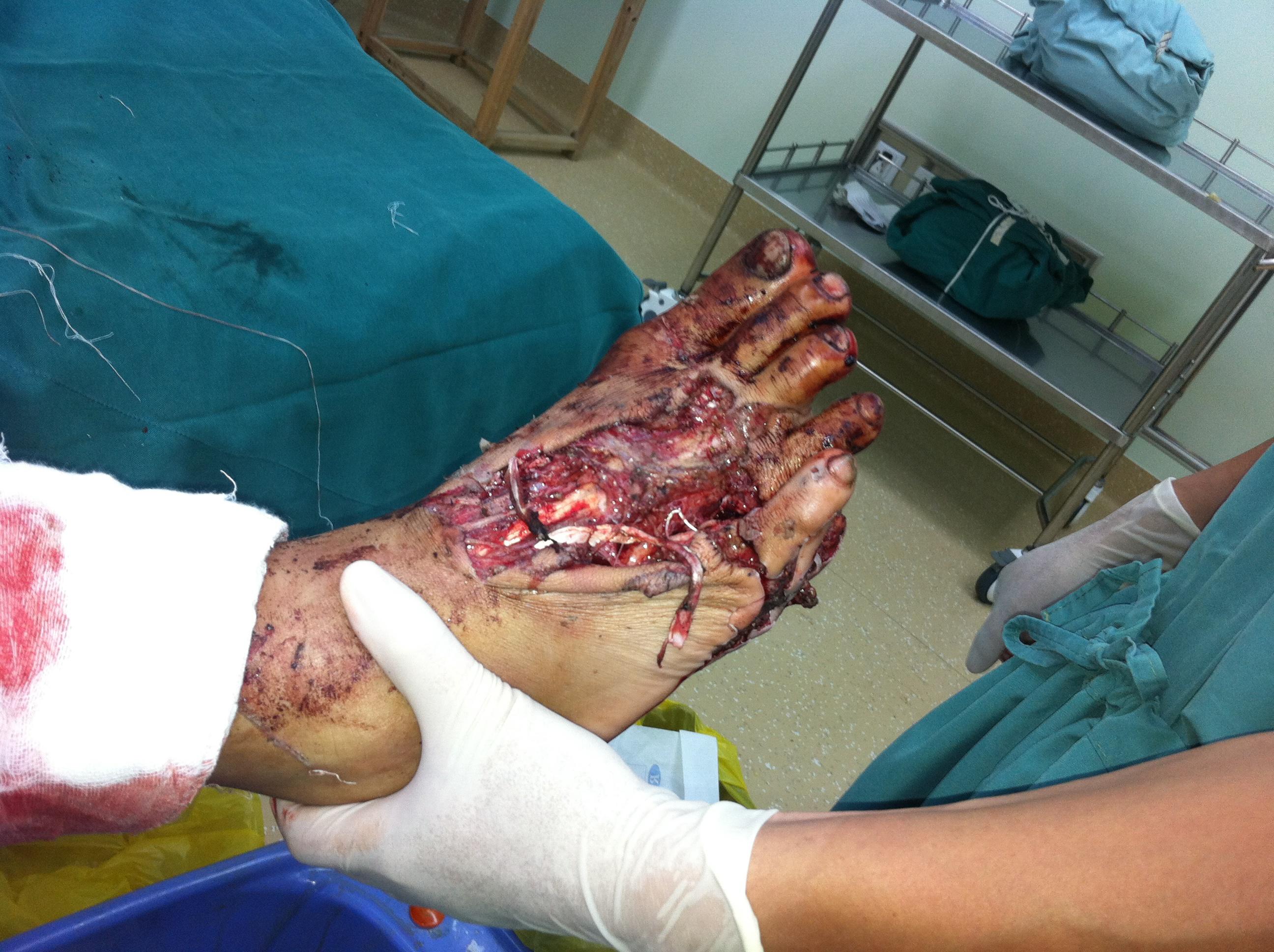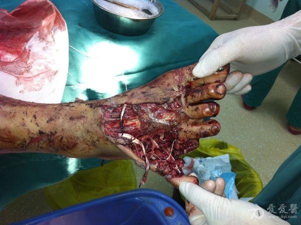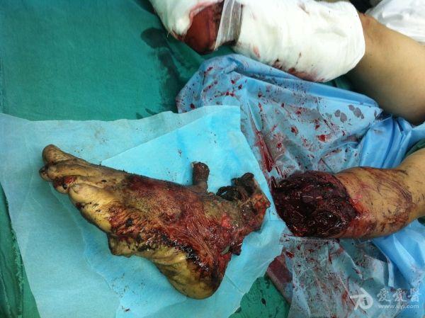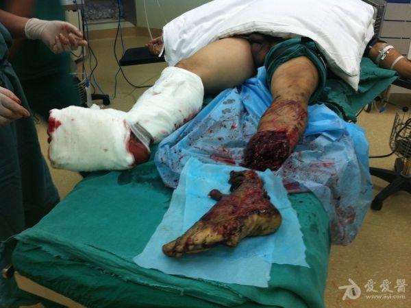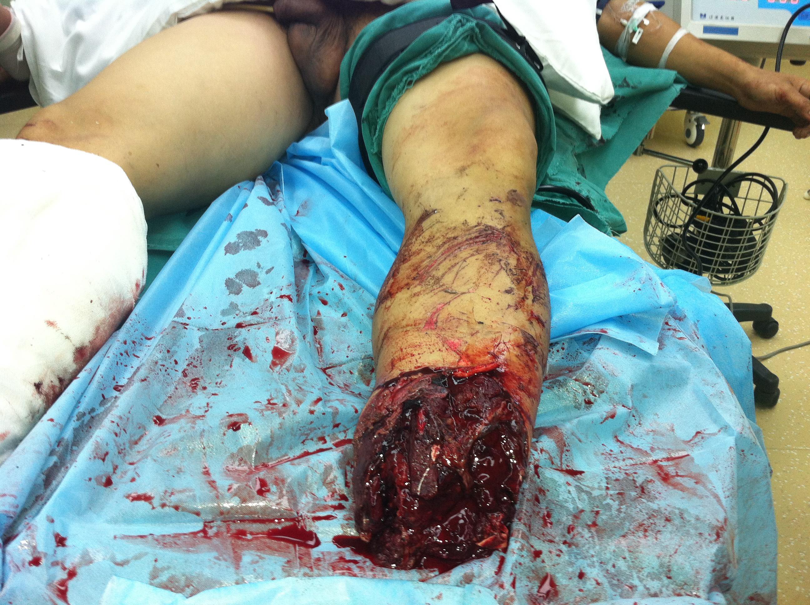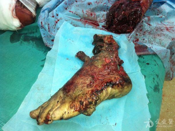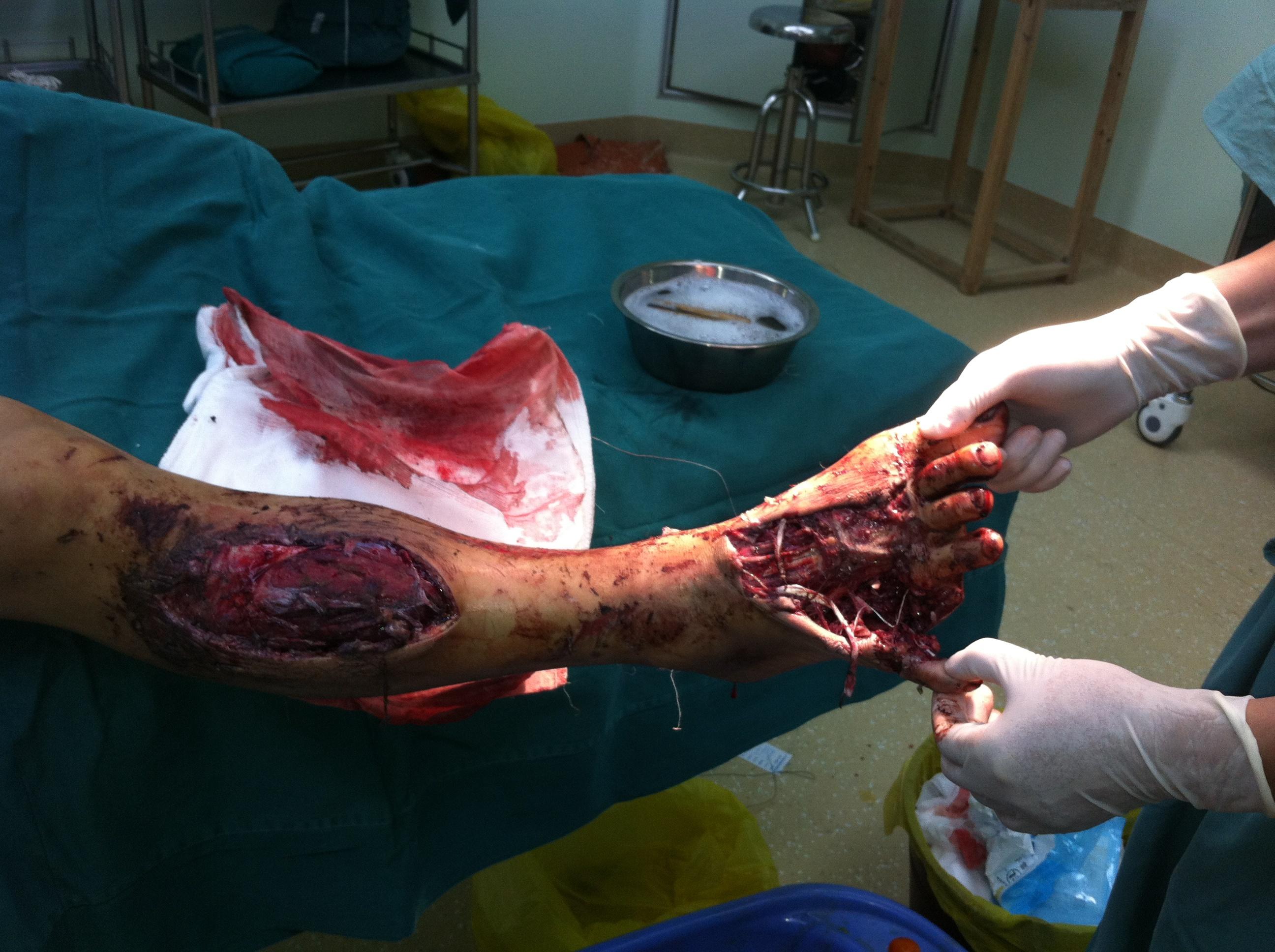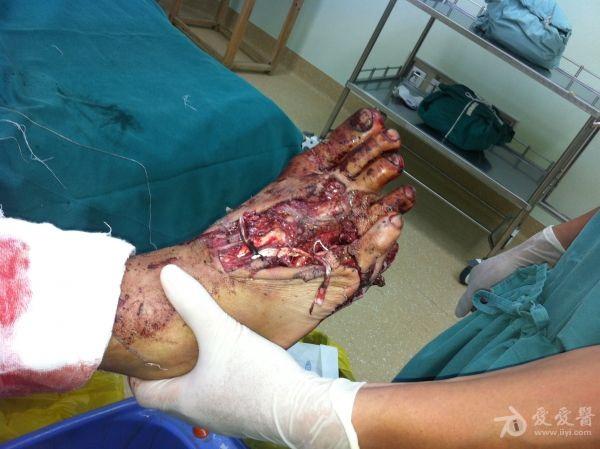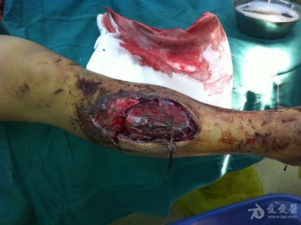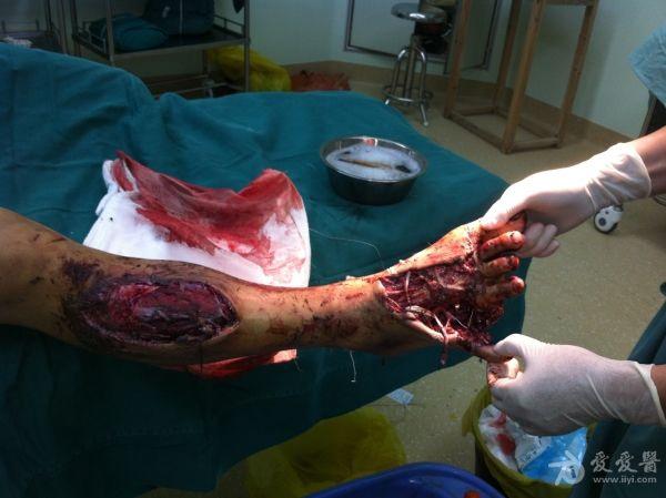 2、右胫骨开放性骨折支架外固定+VSD;
