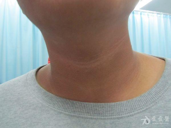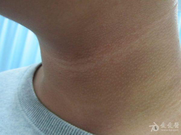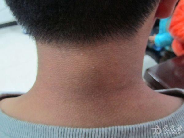 患者10年前,被家人发现颈部肤色变暗 ,之前曾用过激素软膏治疗颈部湿疹,后呈色素沉着改变,自以为可以自愈,无不适症状,未于治疗。今日经推荐来我院治疗。发病来精神、饮食均可,二便正常,体重基本无变化。