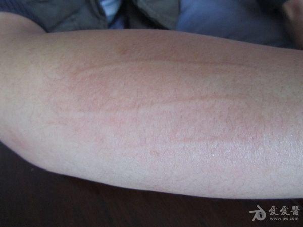 男子身上的划痕——人工性荨麻疹