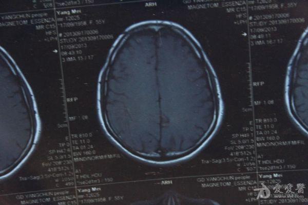 磁共振没有平扫,增强矢状位没找到病灶。像脑膜瘤。