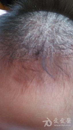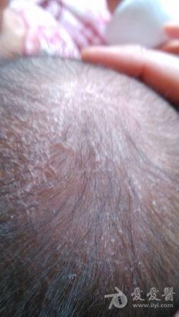 三个月大的婴儿,头皮上长满了脂状物,硬结,干燥,无异味