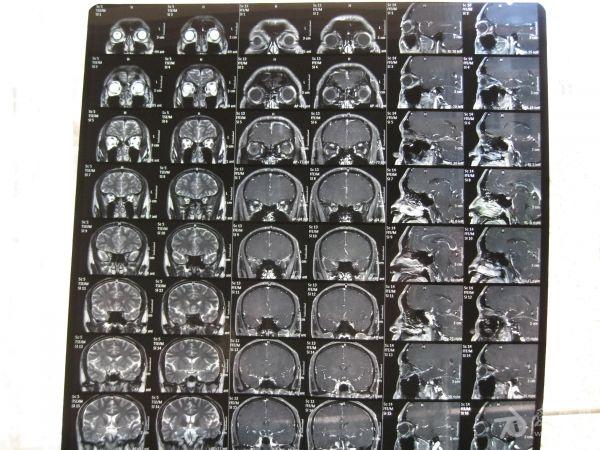 将头颅平扫+头颅增强+眼眶平扫+眼眶增强的MRI拍照后发上来了,请大家帮忙阅片。看一下是否有颅内软化灶、眼部病变及颈动脉海绵窦瘘CCF表现?另外,帮忙看一下上鼻道及筛窦内线样长T2信号影为何物?是不是脑脊液鼻漏?(影像报告上说不排外脑脊液鼻漏可能)。