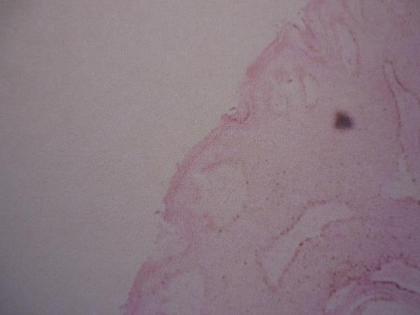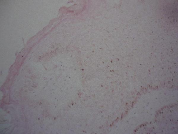 患者男,69岁。颈部长一**状丘疹,色黑,无自觉症状,已十余年。激光手术切除,病理回报:脂溢性角化病。
