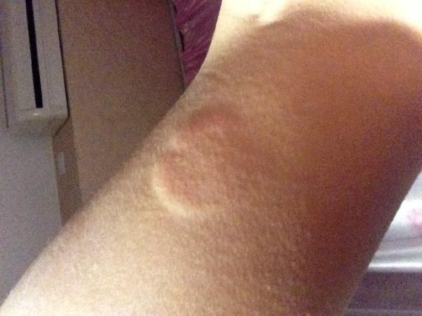 初步诊断为荨麻疹,可以购买醋酸**软膏外涂。