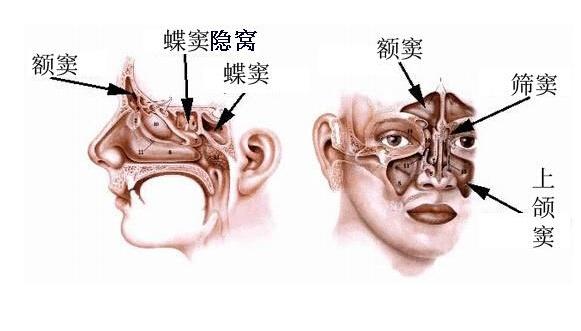 鼻窦(nasal sinuses)为鼻腔周围颅骨含气空腔,按其所在颅骨命名为额窦、筛窦、上颌及蝶窦,共四对。各鼻窦的发育进度不一致,初生儿只有上颌窦和筛窦,到三岁时额窦和蝶窦才开始出现,各鼻窦形状,大小随着年龄、性别和发育状况而有所不同。
