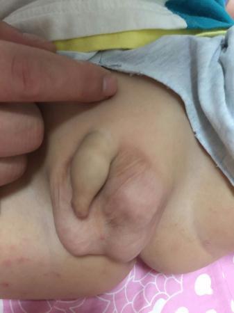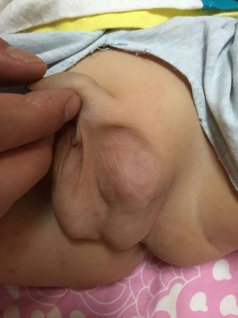 2岁半宝宝,最近发现宝宝左侧阴囊有物脱出,触之软,睡觉和阴囊皮肤收紧时脱出物回纳。就诊了两个医院儿科,因就诊时脱出物不明显!没有明确诊断,有考虑精索静脉曲张,两次B超也因脱出物不明显,报告示,没有明显异常!现拍了几张宝宝阴囊皮肤松弛时的照片,请大家帮忙看看。。。