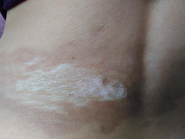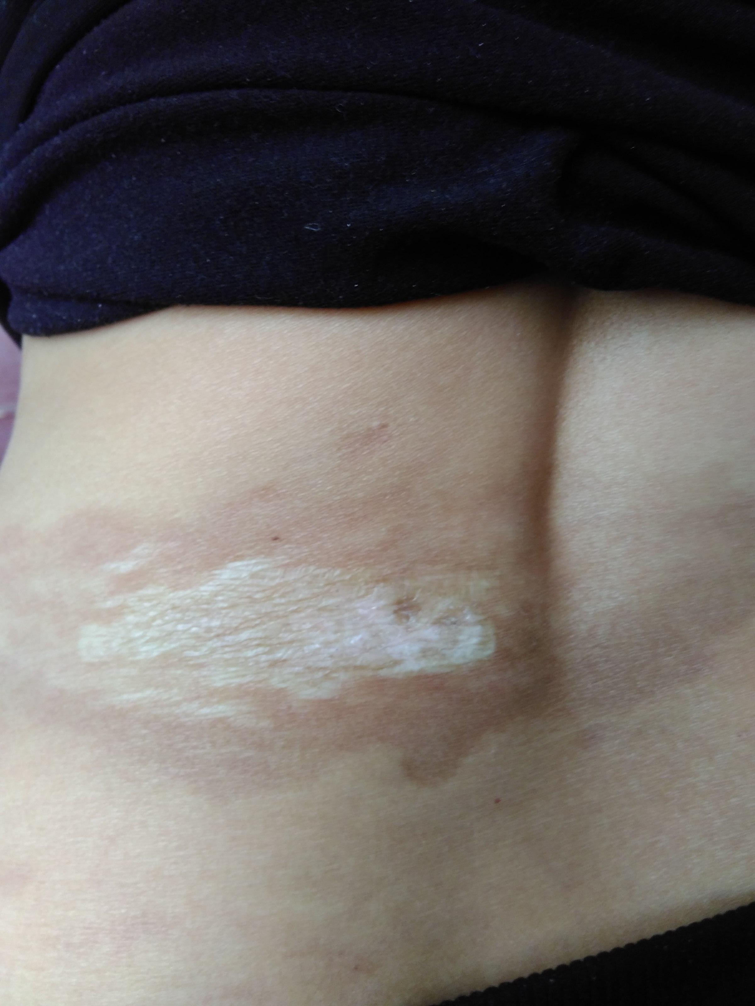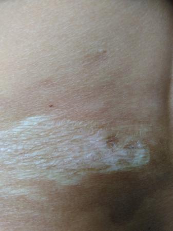 腰部皮疹,前几年瘙痒明显,目前瘙痒减轻,部分皮疹萎缩色脱,曾用过各种激素类软膏和