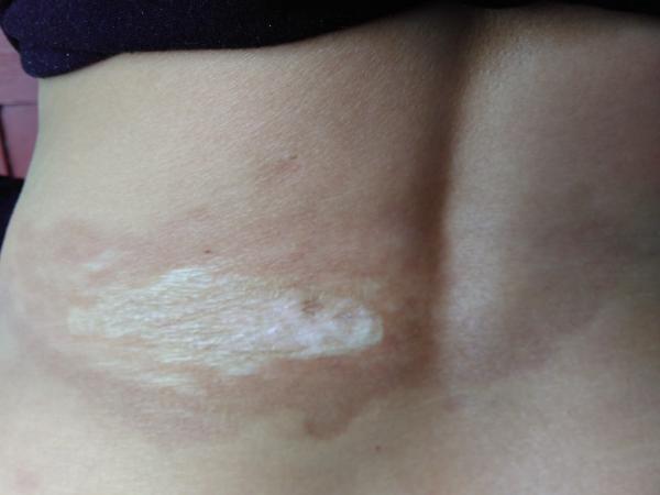 腰部皮疹,前几年瘙痒明显,目前瘙痒减轻,部分皮疹萎缩色脱,曾用过各种激素类软膏和针头挑刺过…