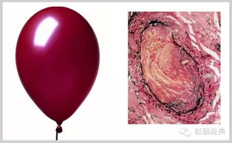 痔疮就是气球,从外观上看是。当然要在皮下看、显微镜下看(右图,痔疮病理图,黑圈内就是痔疮),或解剖图上看(下图)。