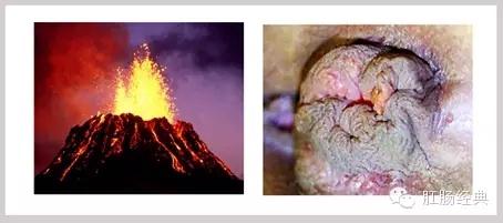 火山口的形成来自于火山喷发时的压力和张力,同样痔疮的形成则是来自于压力(腹压和肛管压)和重力。从这个角度看,便秘和腹泻是痔疮的重要病因。
