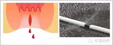 自来水管漏水我们都熟悉,水龙头问题多会滴水,而接缝问题就要喷出了。痔疮出血,这两种情况都有。