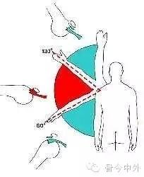 患肩外展未到60°时疼痛较轻,被动外展至60-120°范围时,疼痛较重,当上举超过120°时,疼痛又减轻,且可自动继续上举。因而对60-120°这个范围称为“疼痛弧”,疼痛弧试验阳性,提示冈上肌肌腱炎。