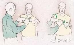 即前屈上举征。医生以手下压患侧肩胛骨并于中立位前举、上举,肩袖的大结节附着点撞击肩峰的前缘,肩痛为阳性,见于撞击综合征。