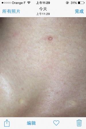 摸起来有点硬。几天前腿上有一个扣掉了。一个针尖大小的小白疙瘩在里面。
