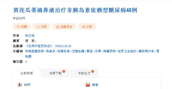 据文献报导中药瓜蒂液治疗糖尿病(网络文献分享,仅供参考)