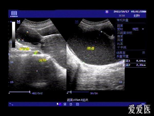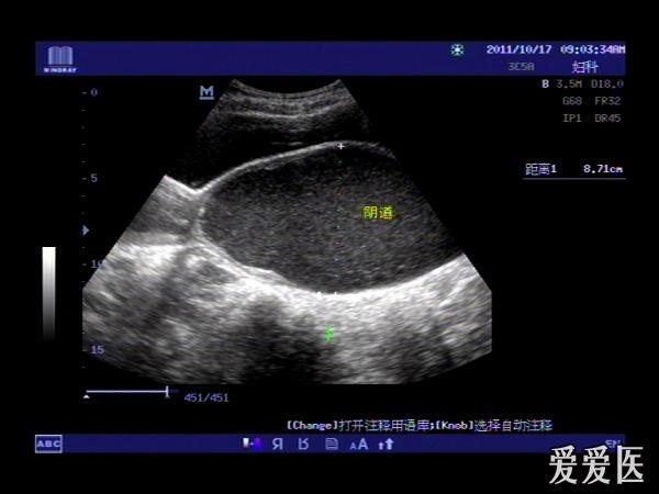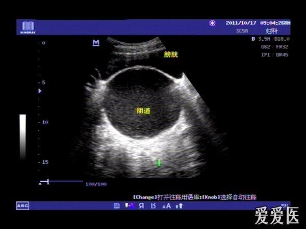 患者,女,14岁,因周期性下腹部胀痛不适3月余来我院就诊。查体:下腹部可扪及一包块。超声检查:膀胱适度充盈,子宫前倾位,宫底部上移至脐平面,宫体宫腔,宫颈及**明显扩张呈椭圆形,内回声不纯净,呈细密的点状回声,宫内膜显示清晰。超声诊断:处女膜闭锁。