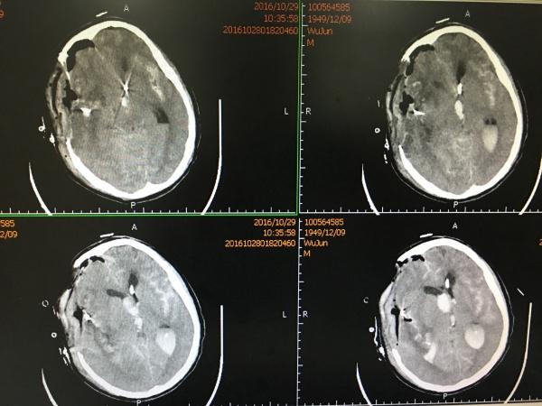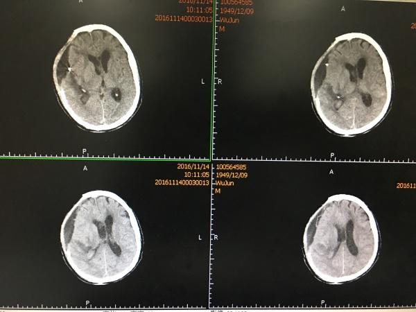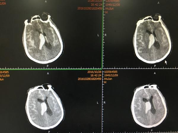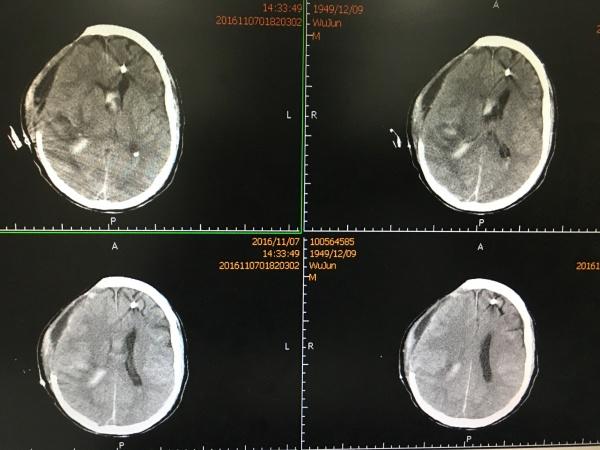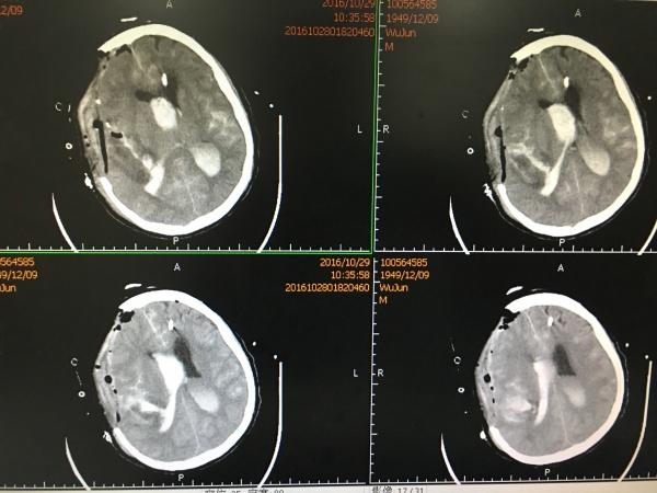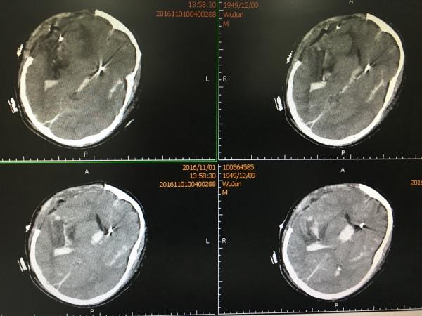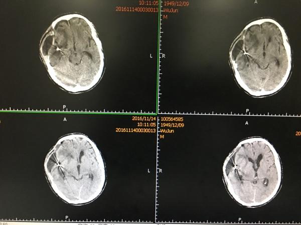 硬膜下积液较前稍增加,中线基本回位,积液未造成明显占位效应,故我们决定继续观察,必要时可以予以Ommayya囊植入、积液引流术。