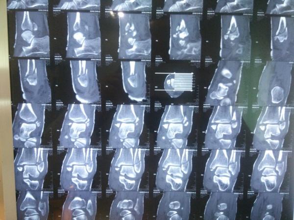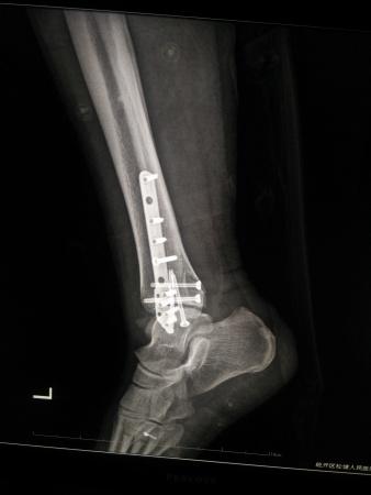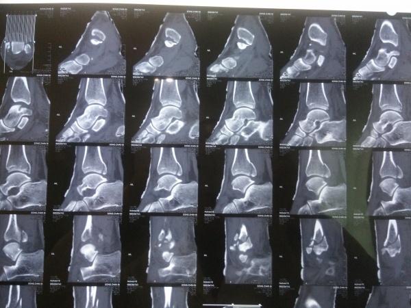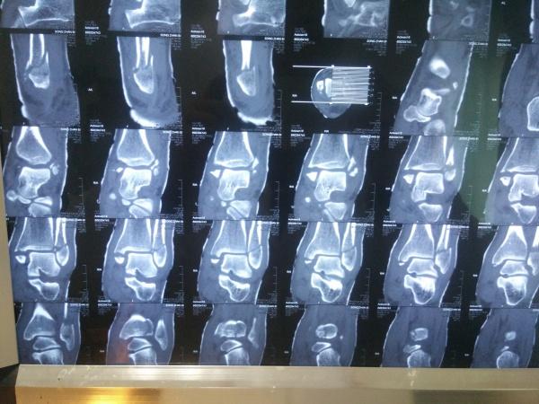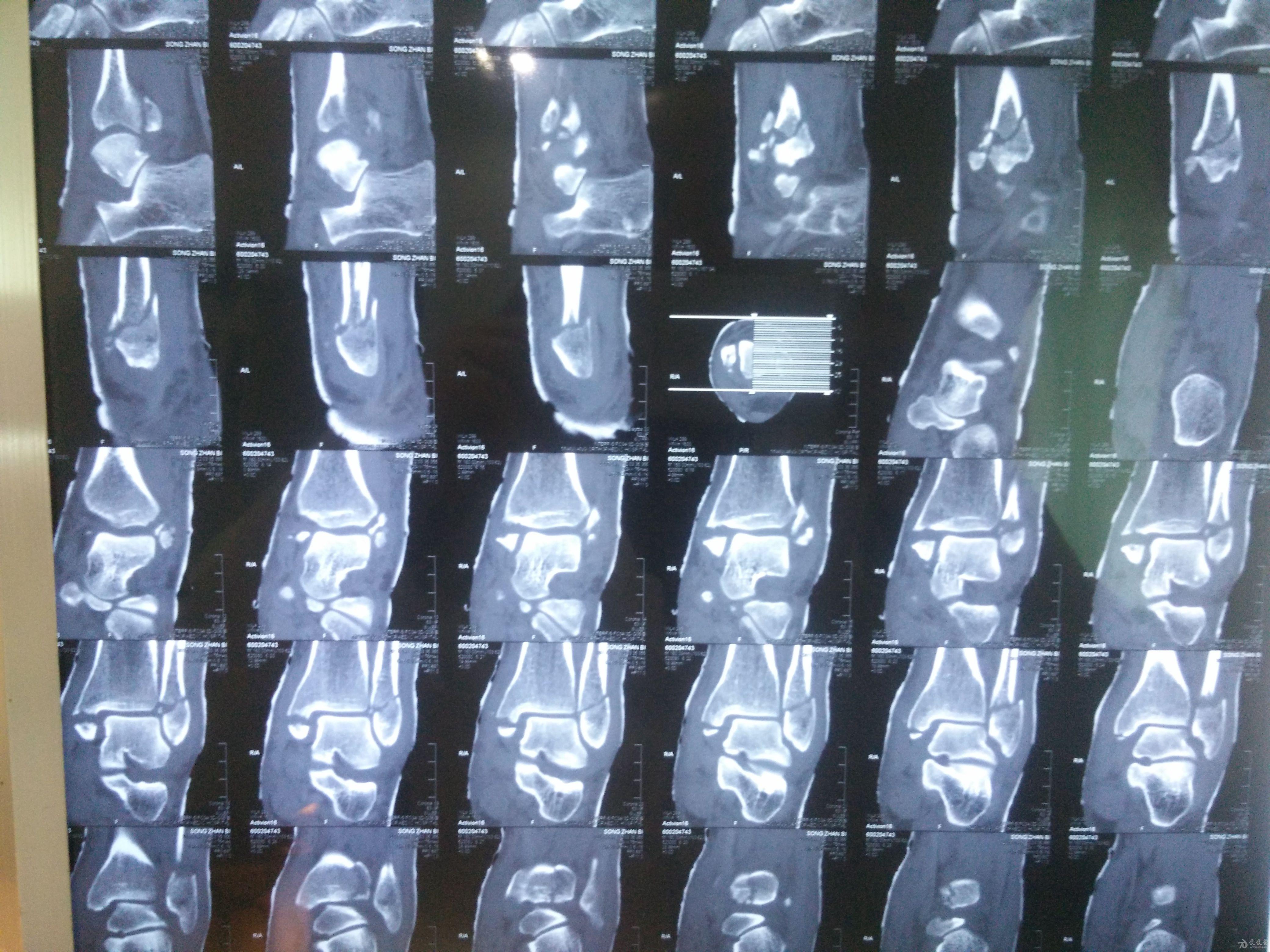 入院后查体:左踝关节肿胀,活动受限,行DR及左踝关节CT检查,如下图,手术待肿胀消退后行手术治疗,目前愈合良好,请问问各位老师,好久可以下地呀, 下胫腓联合镙钉3个月取呀,