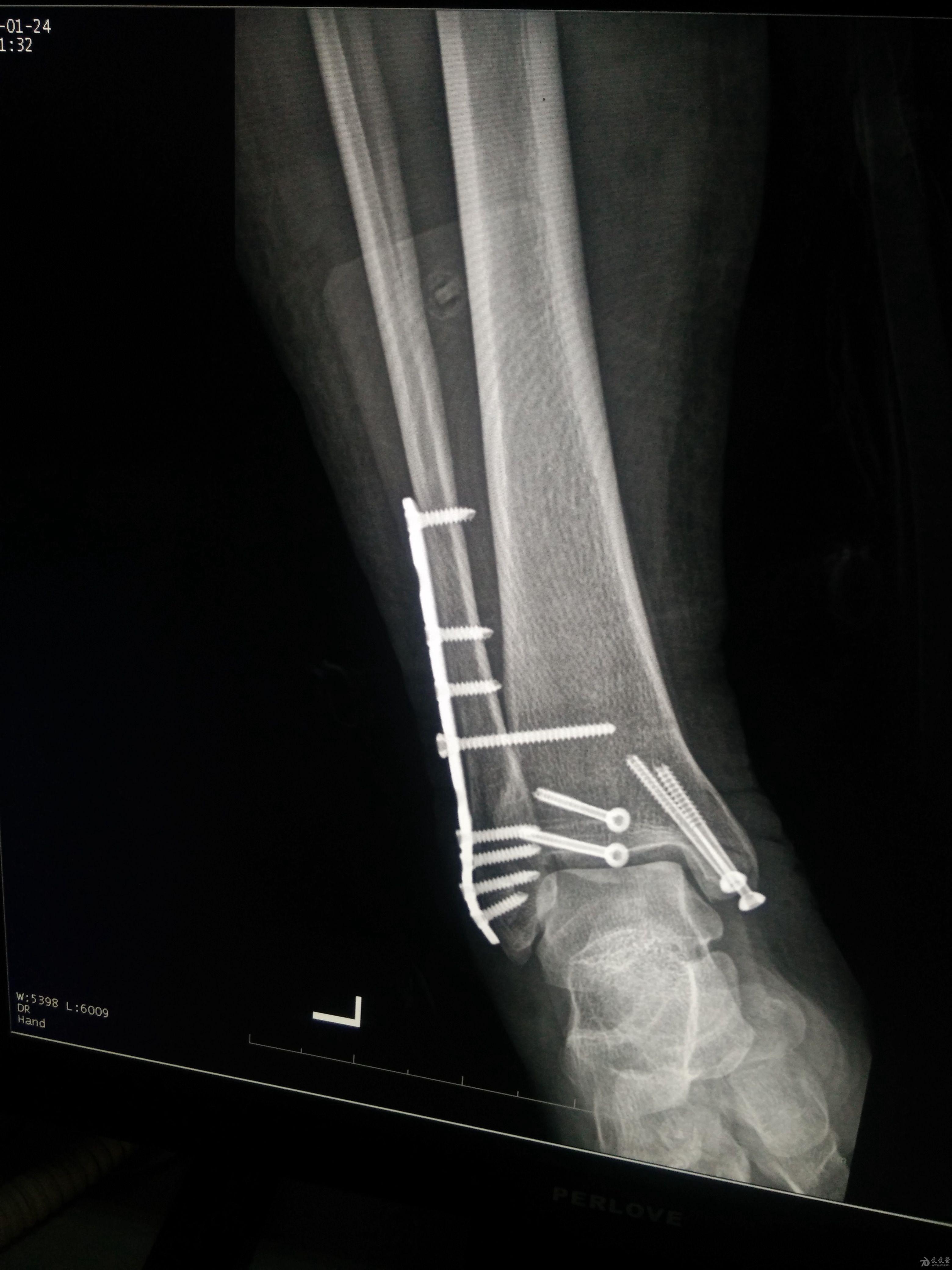 这个下胫腓螺钉真的没有必要打,另外后踝的两枚螺钉怪怪的,从后往前打的,看着钉子帽偏内侧,这个应该在外侧才对,