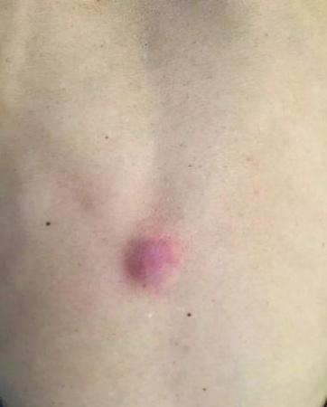 男,55岁,背部疼痛一周别人发现背部有“红疙瘩”