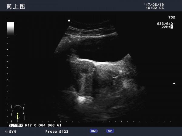 于月经第11天行B超检查。