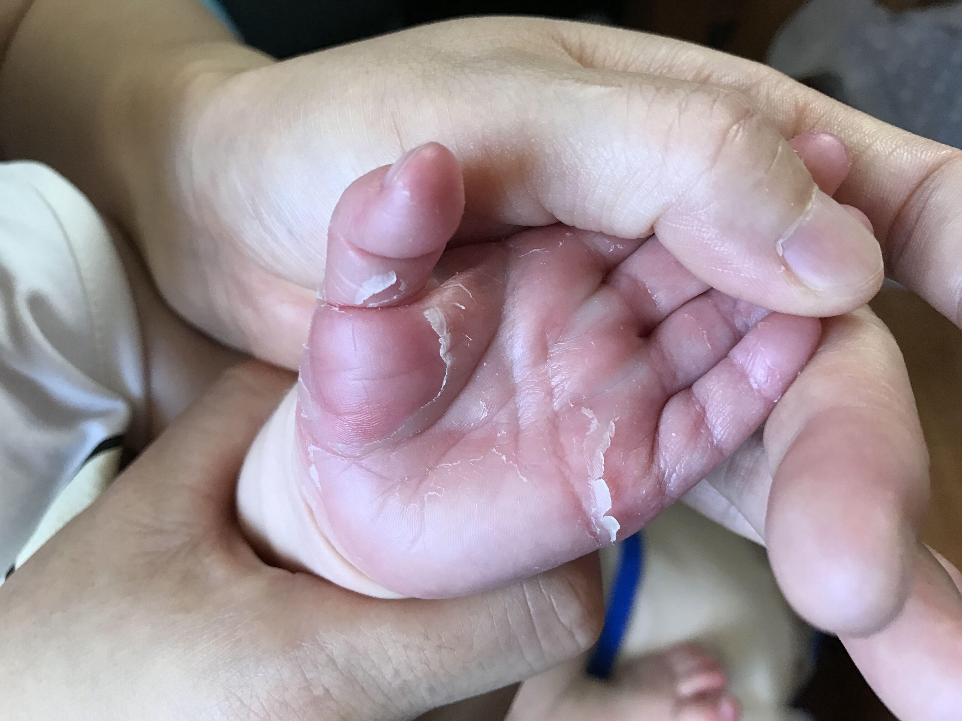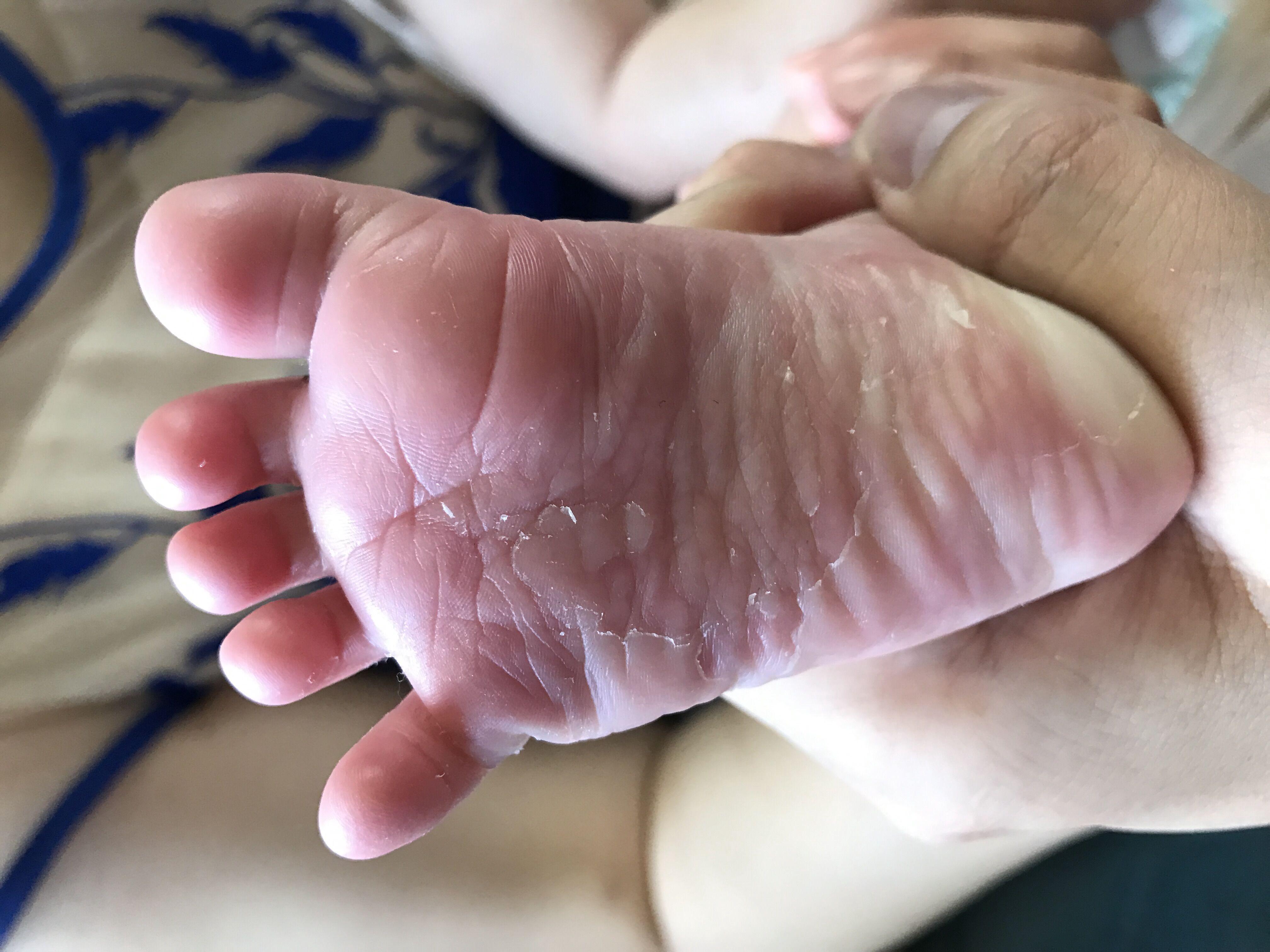 7个月大女幼儿, 是剥脱性角质松解症 还是掌趾角化症 ?求教怎样治疗?多谢 剥脱性角质松解症