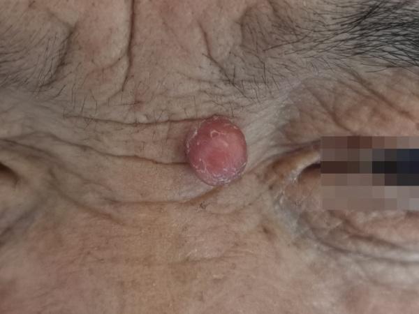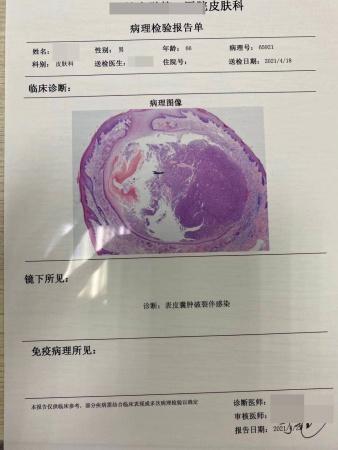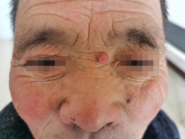 鼻根部黄豆大隆起结节,手术切除+病理诊为:表皮囊肿。