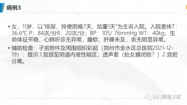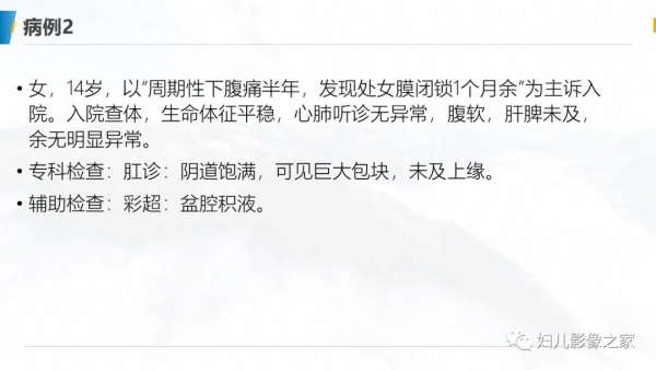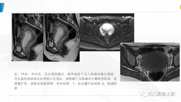 专科检查:外阴发育尚可,处女膜开口较小,棉签探入约4cm,无膨 隆,肛诊:子宫、宫颈膨隆,最低处距处女膜约4cm。